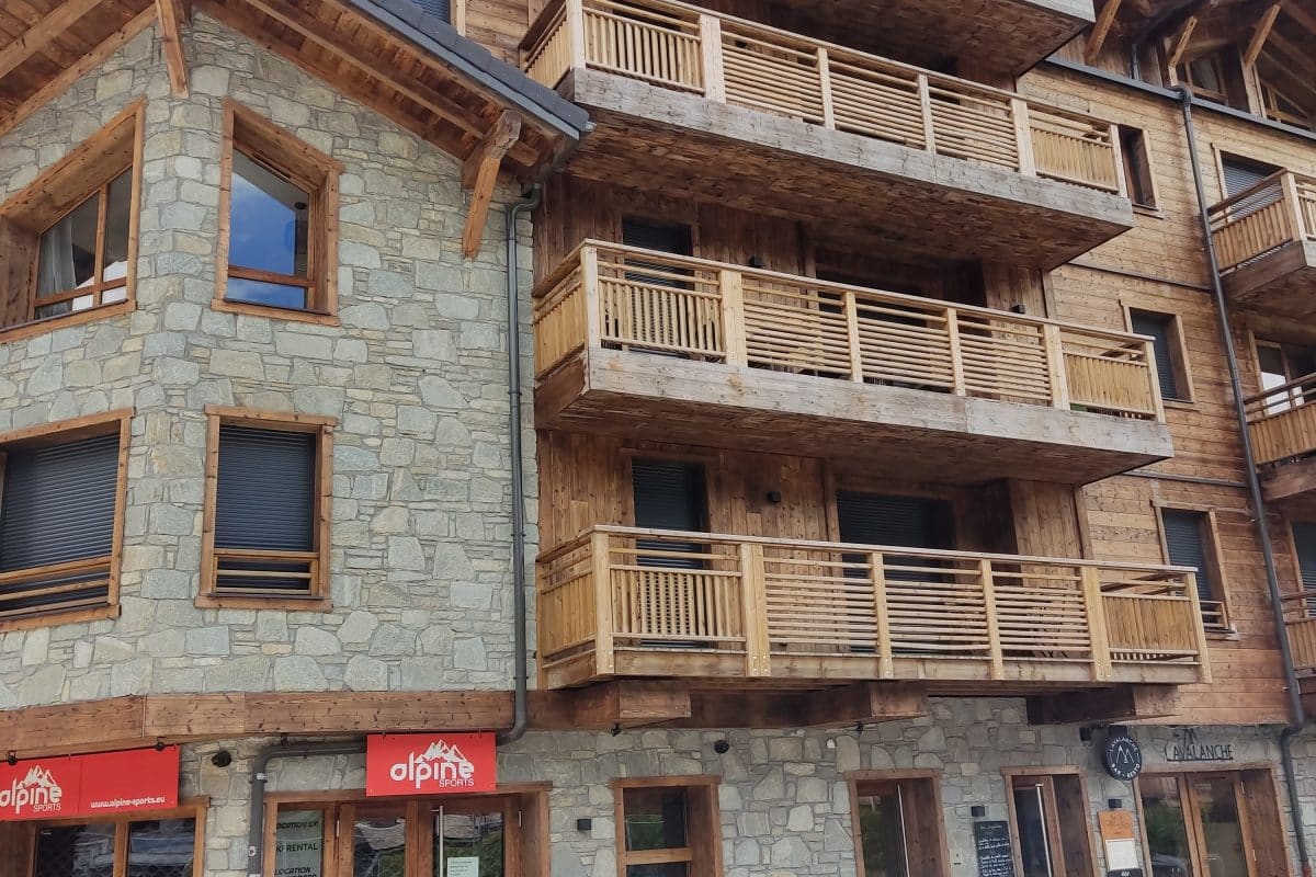 The entrance door is on Route de la Plagne facing the estate agents, between the shop Alpine Sports and Avalanche restaurant. There is a keypad to access the building.